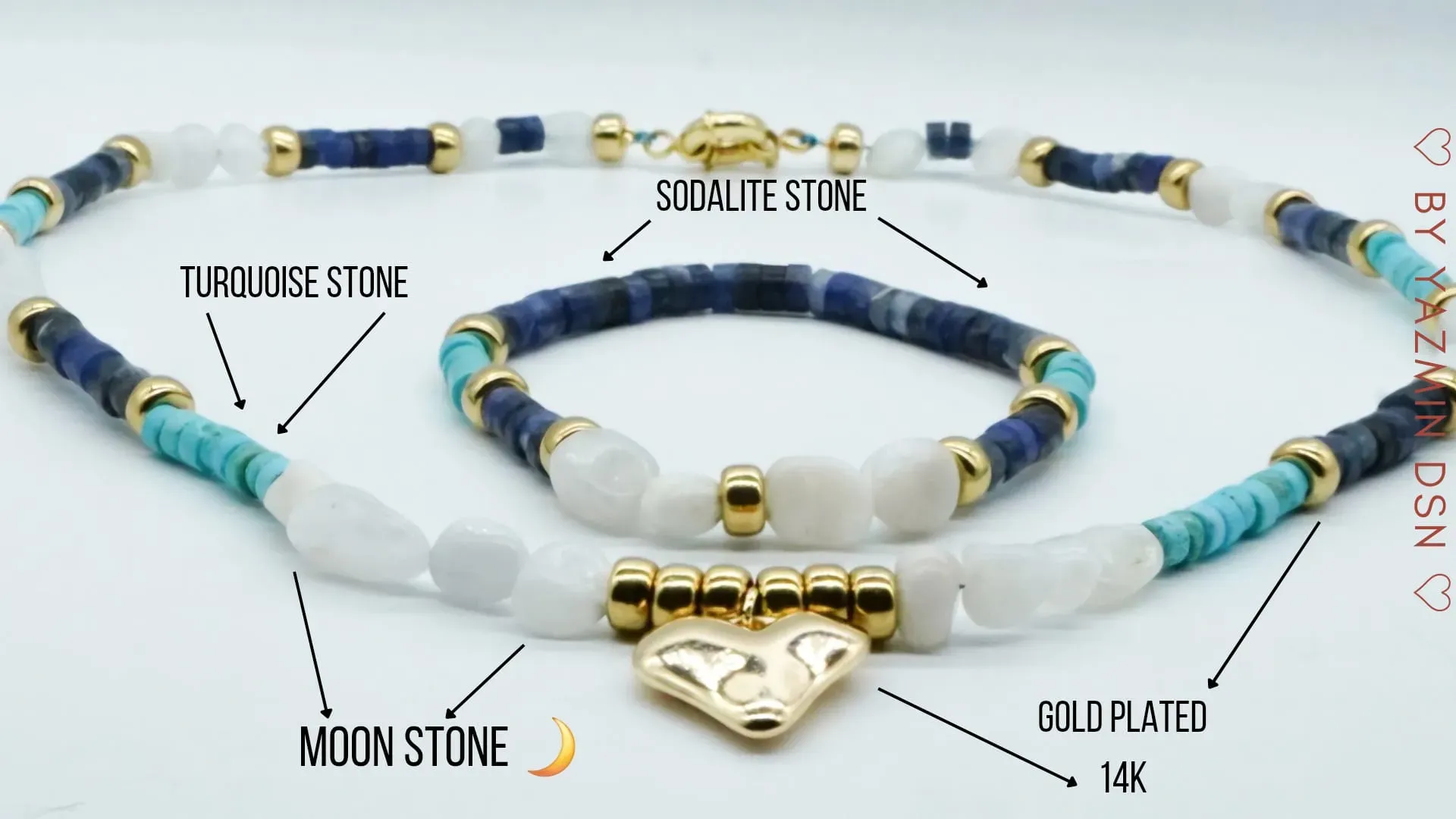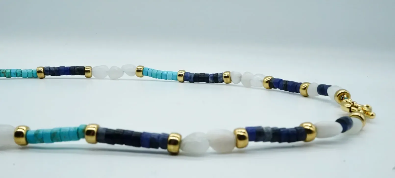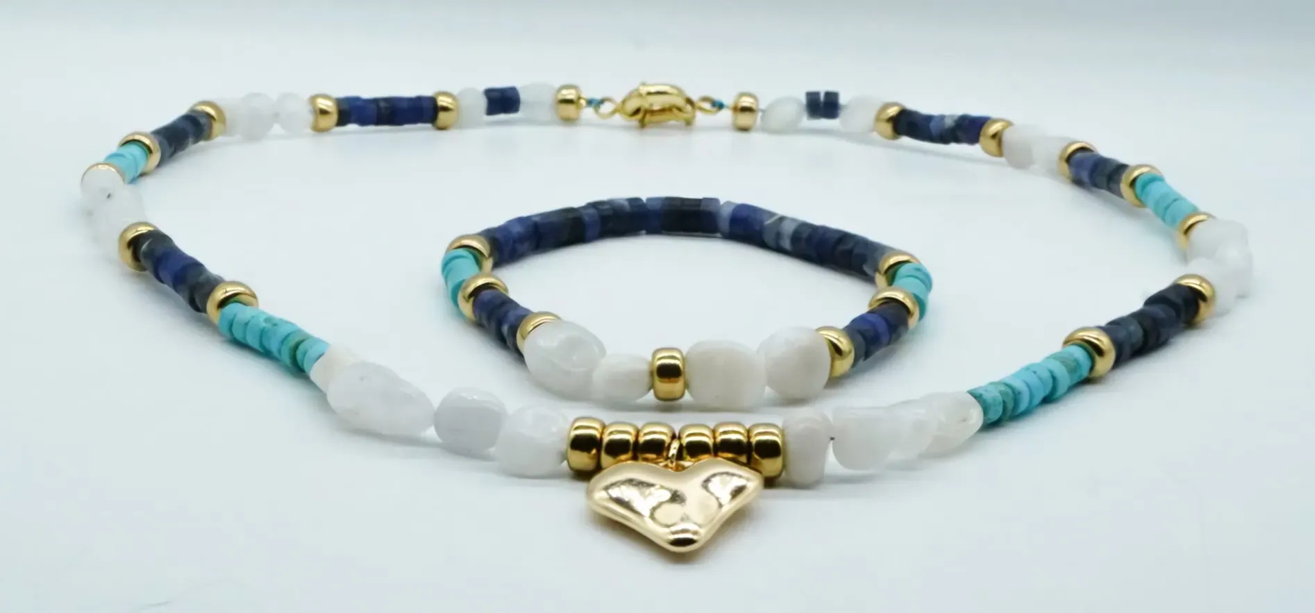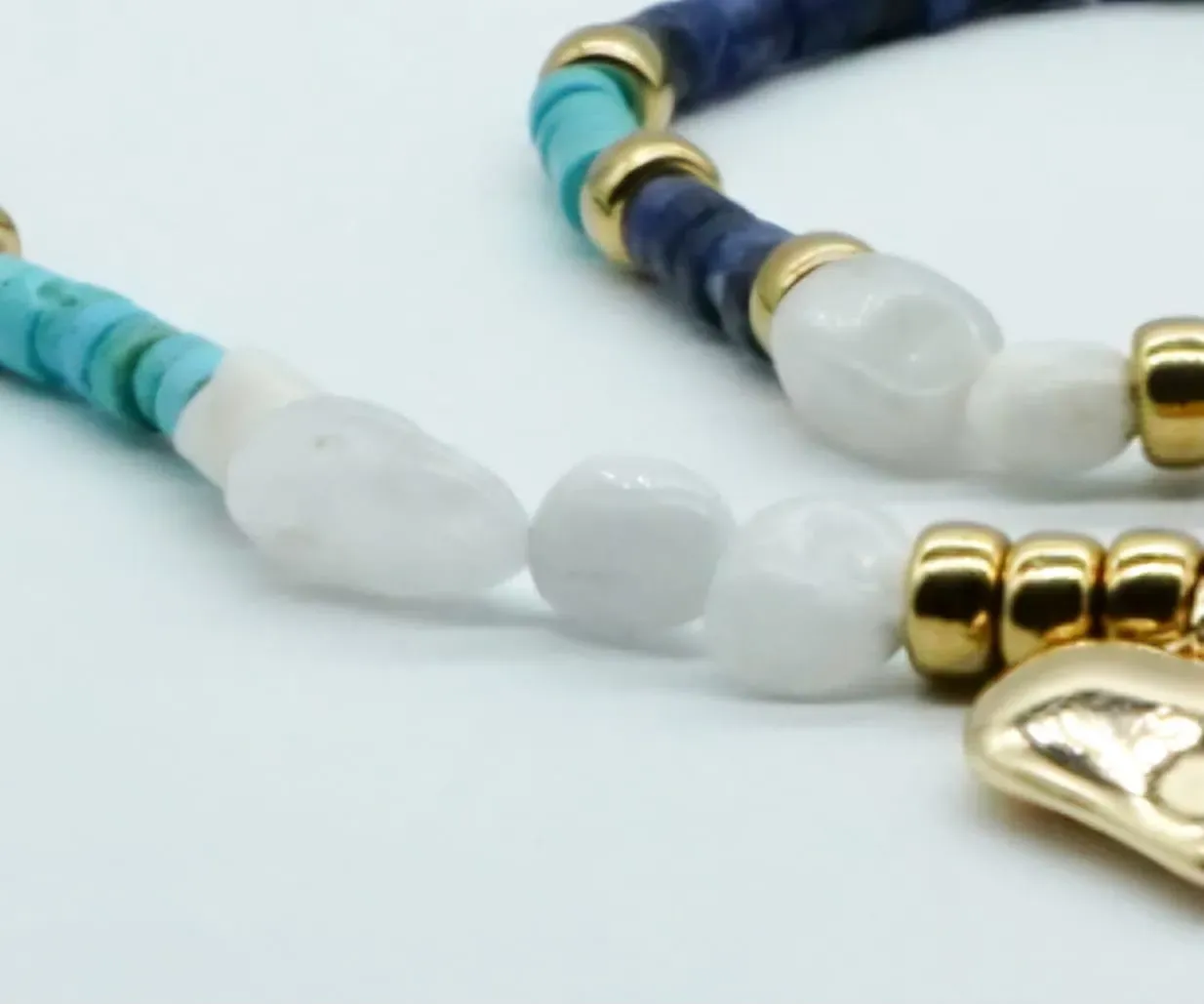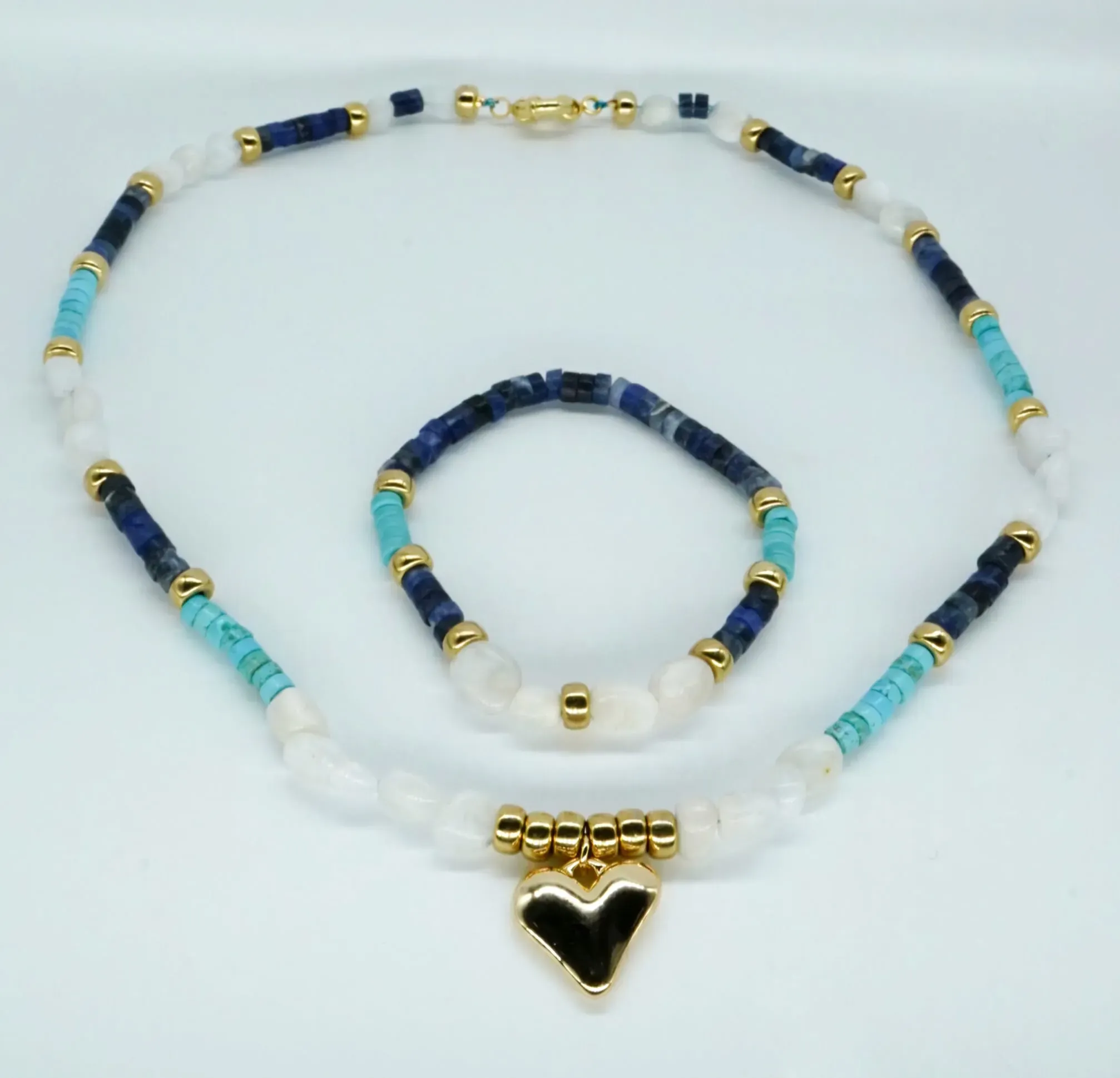 Moon stone, turquoise stone, sodalite stone, 14k gold plated.